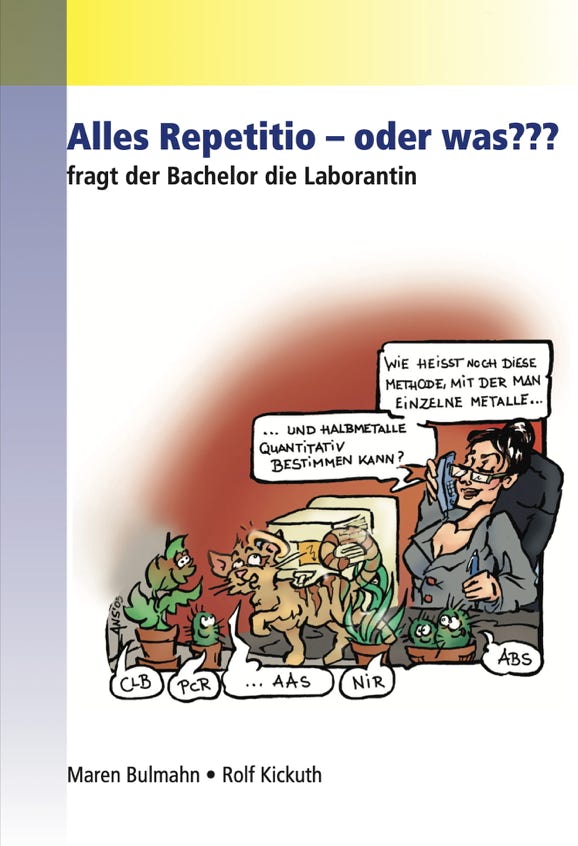 Dr. Maren Bulmahn, Rolf Kickuth: Alles Repetitio – oder was???; 244 Seiten mit 85 Abbildungen und 19 Tabellen; Paperback; 1. Auflage Oktober 2005; ISBN 3-9810449-0-8; Preis 22 Euro inkl. MWSt. plus Versand